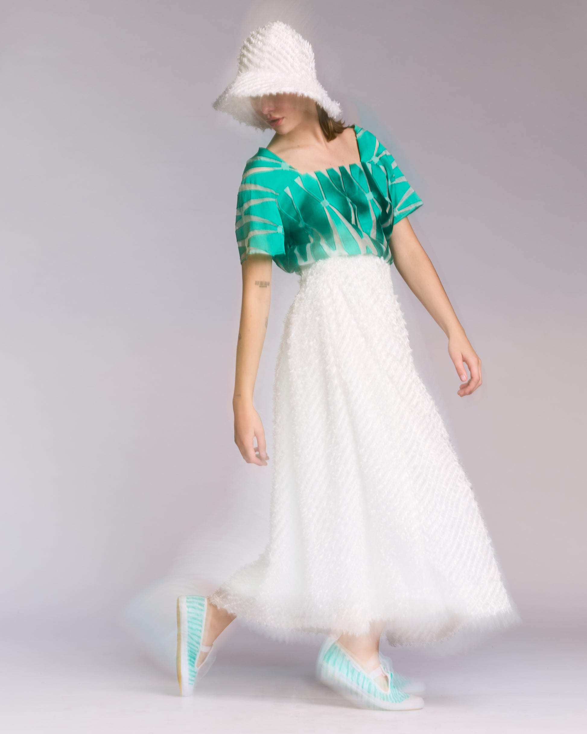 Silk and organza green and transparant top